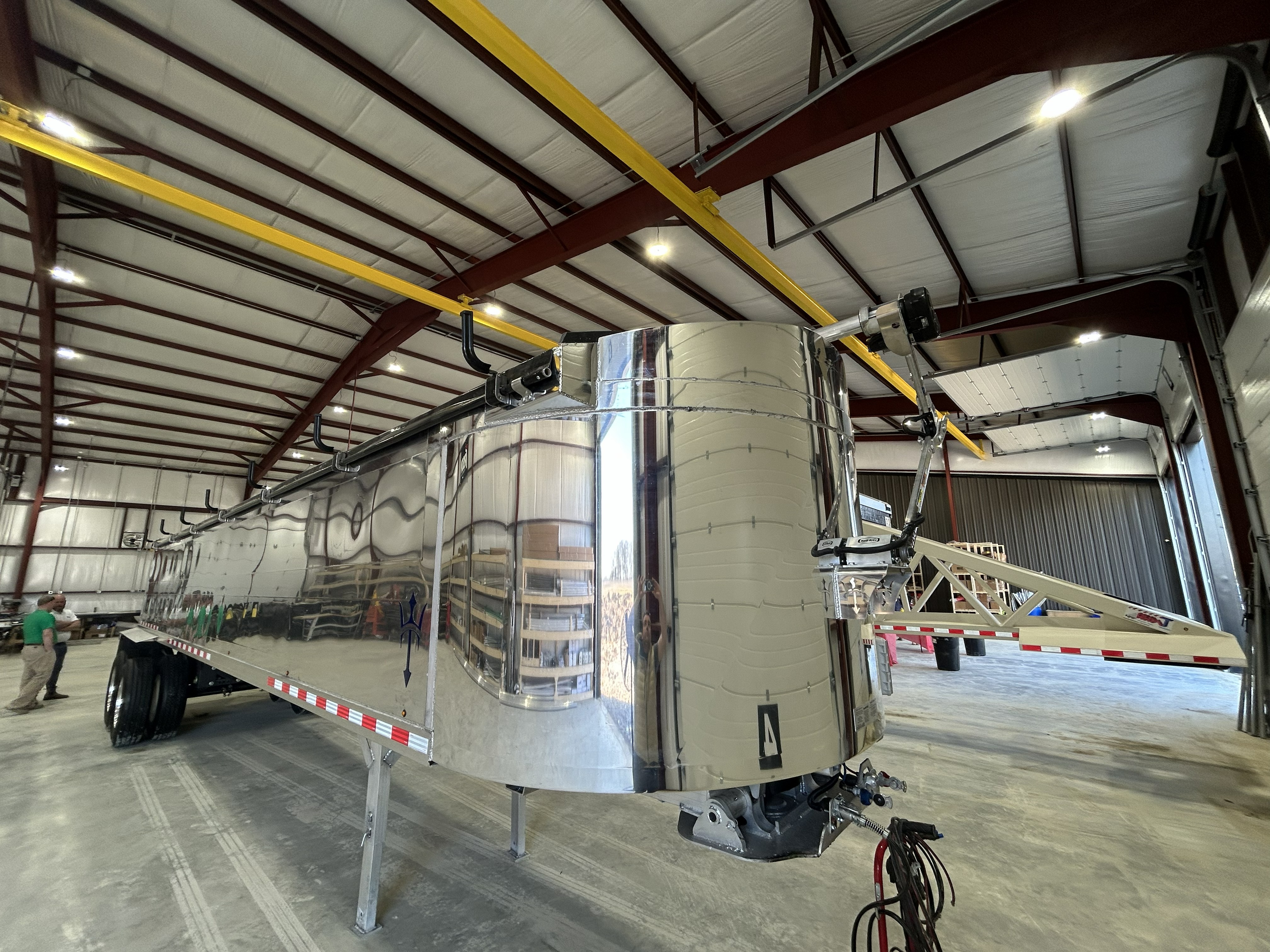 The longest, highest-capacity frameless end dump we build. 40 cubic yards. Maximum payload per trip, minimum dead weight. If you're running long hauls and want every legal pound on the ground, this is your trailer.